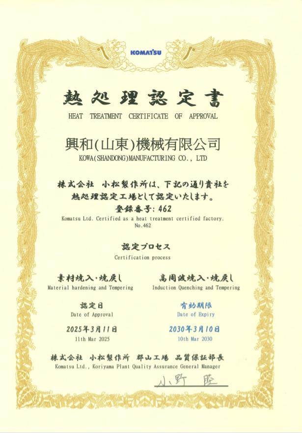 本公司成立于2008年在山東省濟(jì)寧市,是日本株式會社興和工業(yè)所在海外投資成立的一家全日資企業(yè),總投資額42億日元,占地面積27,325㎡,引進(jìn)日本株式會社興和工業(yè)所先進(jìn)的生產(chǎn)技術(shù),進(jìn)口國外數(shù)控自動化設(shè)備,工程、礦山機械制造企業(yè)之一——小松集團(tuán)也以出資方式參與了本公司的建設(shè)。